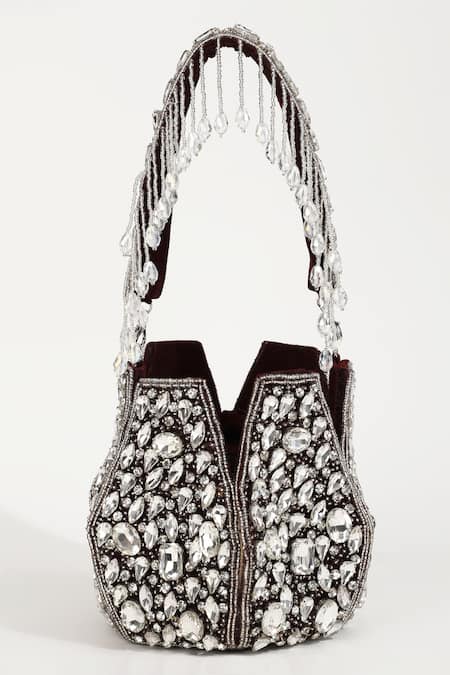 Buy_The Tan Clan_Maroon Embellished Jhalak Stone Potli Bag With Handle _Online_at_Aza_Fashions