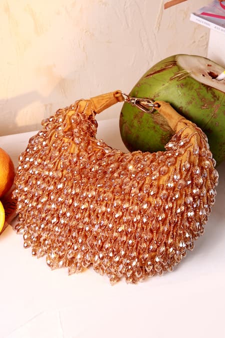 The Tan Clan_Gold Beads, Crystals Jia Half Moon Bag _Online_at_Aza_Fashions