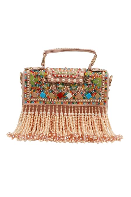Buy_The Tan Clan_Beads, Fringe Kiara Flap Over Clutch Bag_Online_at_Aza_Fashions