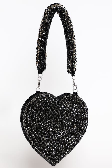 Black Rhinestones Scarlett Embellished Mini Heart-shaped Clutch