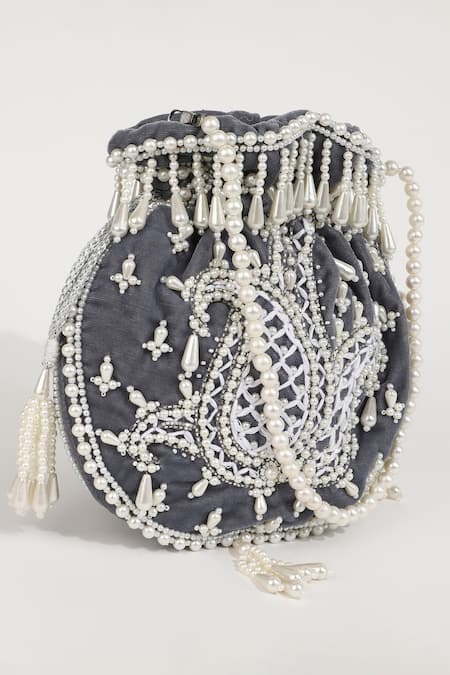 Buy_The Tan Clan_Grey Pearls Sukoon Hand Embellished Potli _Online_at_Aza_Fashions