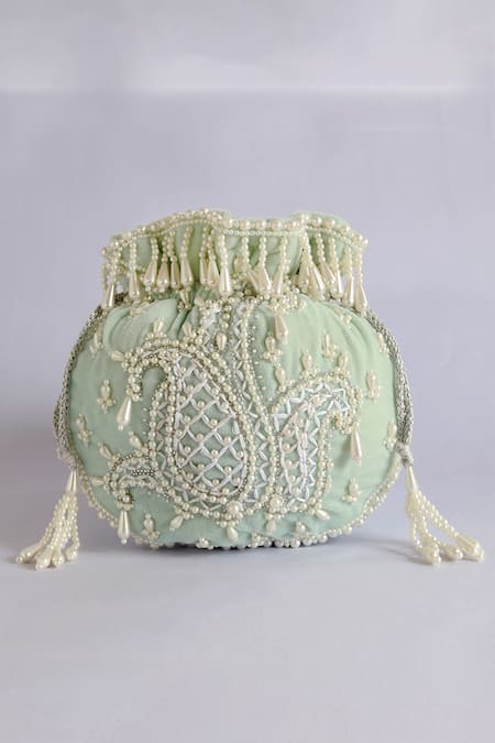 Buy_The Tan Clan_Blue Pearls Sukoon Embellished Potli _Online_at_Aza_Fashions