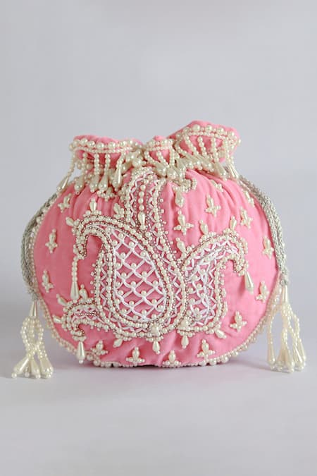 Buy_The Tan Clan_Pink Pearls Sukoon Hand Work Potli _Online_at_Aza_Fashions