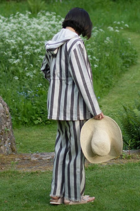 Grey Linen Twill Printed Stripe Collar Nelson Utility Jacket