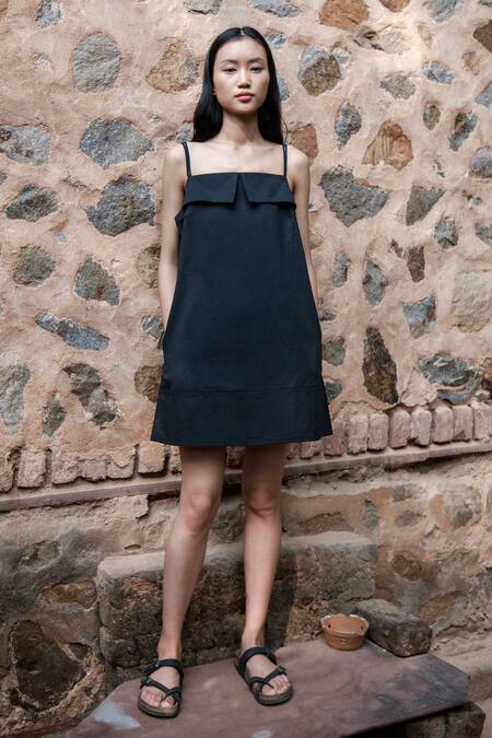Black Organic Cotton Solid Square Rachel Slip Dress