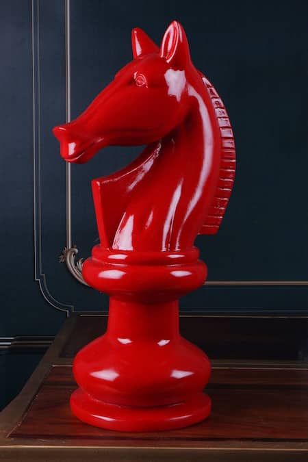 Buy_The White Ink Decor_Red Poly Resin Carved Work Horse Knight Figurine Table Decor_Online_at_Aza_Fashions