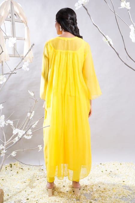 Buy_The White Tree Studio_Yellow Kurta- Chanderi (70% Cotton And 30% Silk) Ravina & Leggings Set _Online_at_Aza_Fashions
