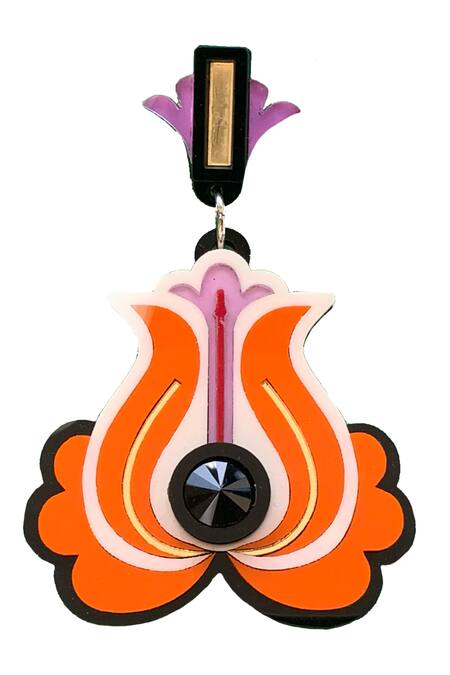 Orange dangler earrings featuring a floral shape with stone embellishment