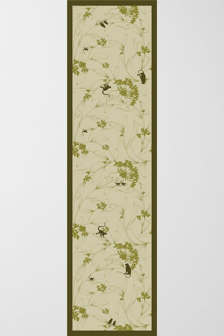 Moss stole featuring floral and monkey prints with hand-rolled edges