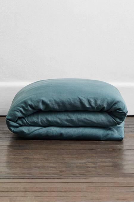 Teal green pure linen duvet cover bedsheet with miltered corner finishing. Comes with matching two pillow cases.
