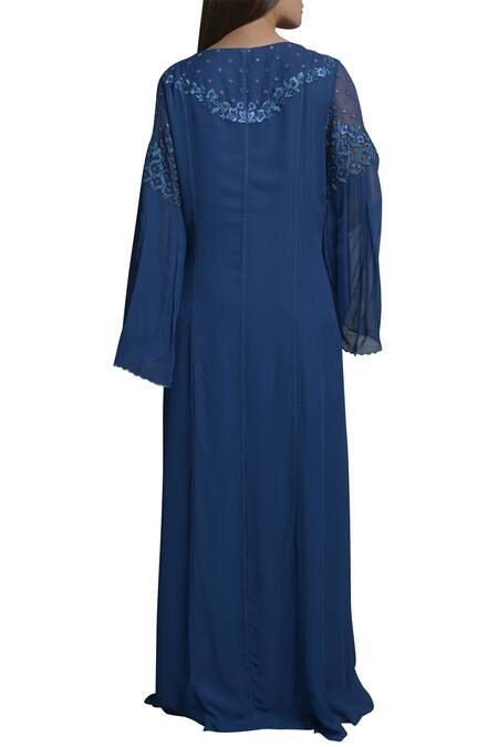 Buy_Mandira Wirk Resort_Blue Thread Embroidered Kaftan Dress_at_Aza_Fashions