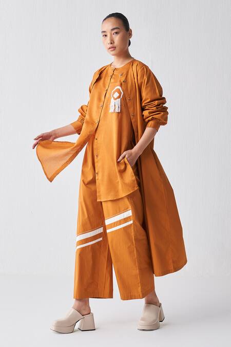 Orange Chanderi Embroidery Round Neck Fringed Detailed Shirt