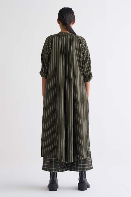 Olive melange broad pant featuring a checkered pattern and side seam pockets