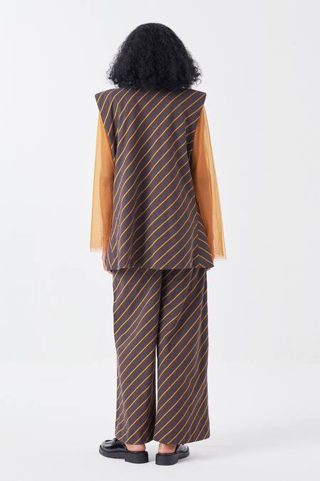 Double-breasted design with lapel collar, Relaxed fit for comfort, Diagonal striped pattern for a trendy look