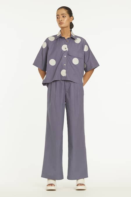 Buy_Three_Purple 100% Cotton Poplin High Waist Pleated Pants_at_Aza_Fashions