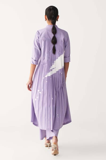Lavender Poplin Mandarin Collar Purple Back Pleat Kurta Co-ord