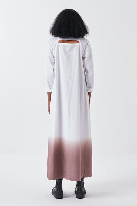 White Poplin Turtle Neck Ombre Dip Dye Midi Dress