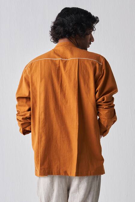 Rust handwoven cotton shirt featuring front buttons and full sleeves