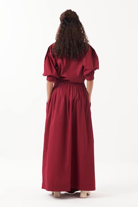 Maroon Poplin Plain Round Neck Top With Maxi Skirt