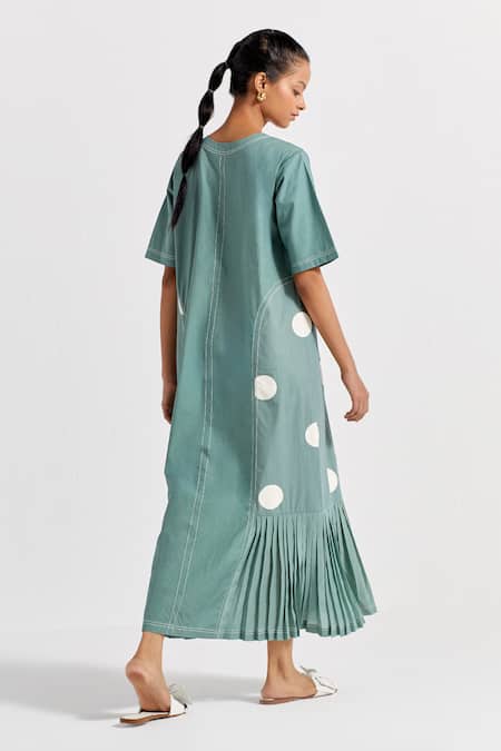 Green Crepe, Poplin Open Neck Polka Dot Pattern Dress