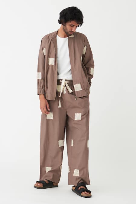 Square wave embroidery detailing on fabric, Front pleats for a tailored look