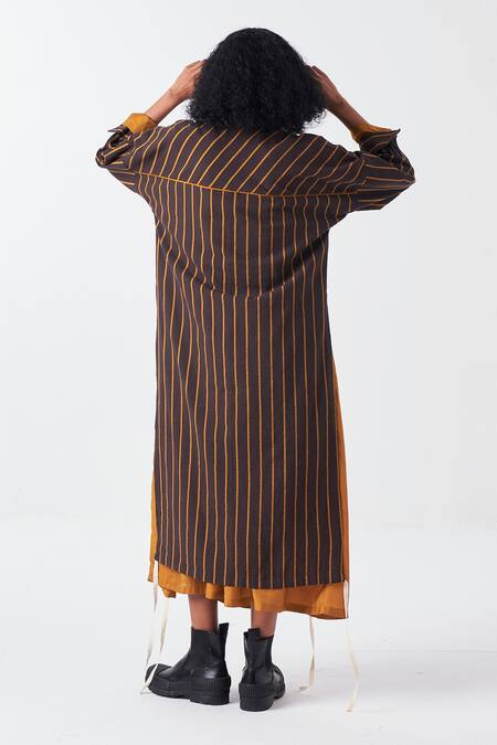 Brown Cotton Collared Striped Tunic With Neck