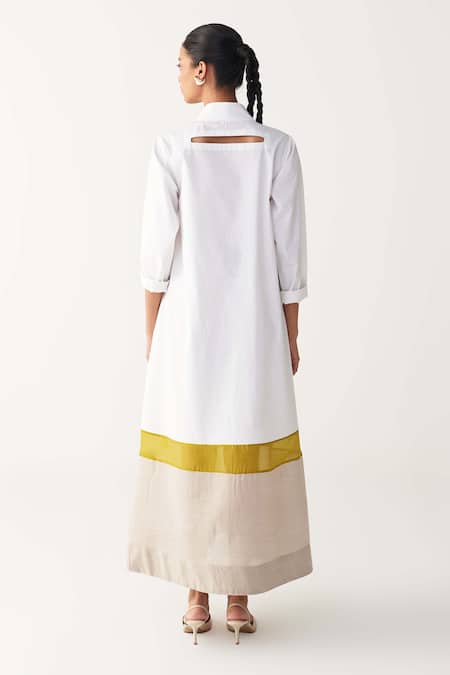 White Poplin, Organza Turtle Neck Dress