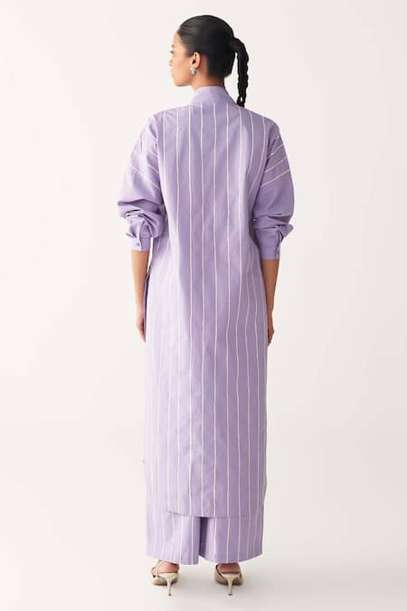 Shop_Three_Lavender Poplin, Cotton Embroidery Collared U-yoke Tunic Co-ord _Online_at_Aza_Fashions