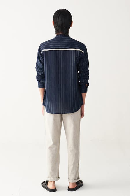 Navy , Handloom Blue Front Pocket Shirt And Beige Pant