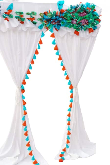 White plain set of 2 curtains made from high GSM premium fabric with colorful tassels.