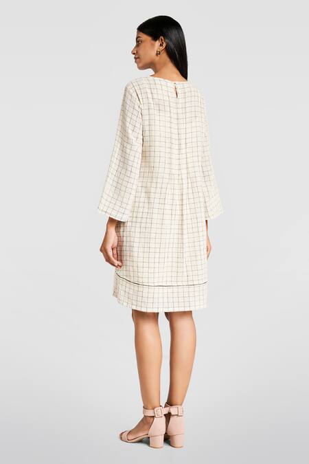 This charmingly feminine dress is a hand spun creation made from sustainable kala cotton that not only feels exceptionally soft, but its lightness is also enhanced by its flowing and flared silhouette.