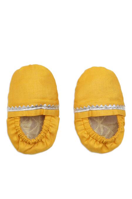 Yellow Silk Organza, Silk, Viscose Lace Embroidered Cap And Booties Set