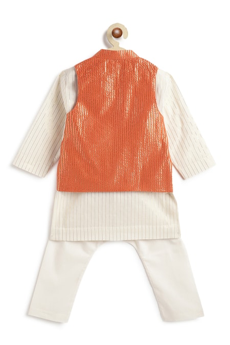 White Cotton, Lurex Orange Designer Kurta Pyjama Set