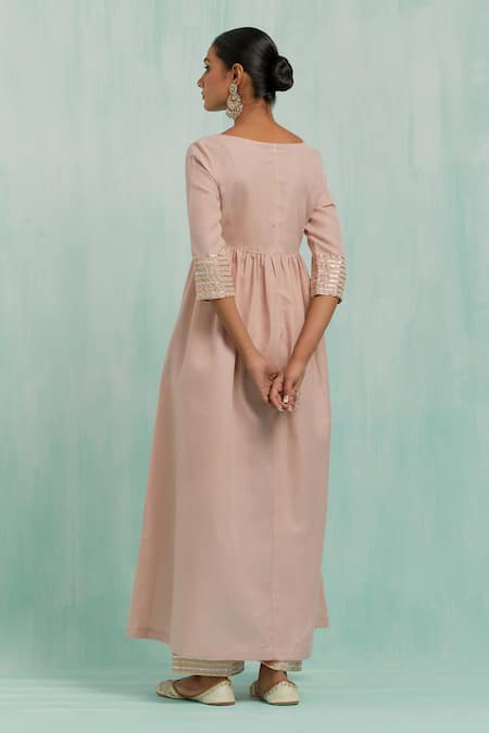 Pink Cotton Gota Patti Embellished Fit And Flare Anarkali Palazzo Set