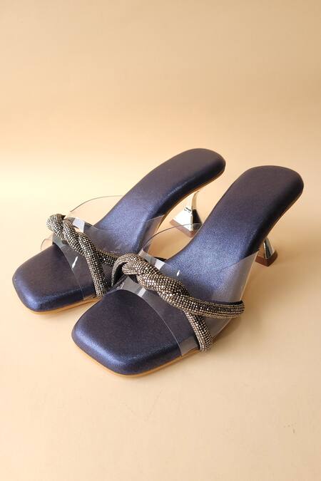 Transparent strap with diamonds embellished twisted cords, Double soft cushioning for comfort, Unique kitten heel design