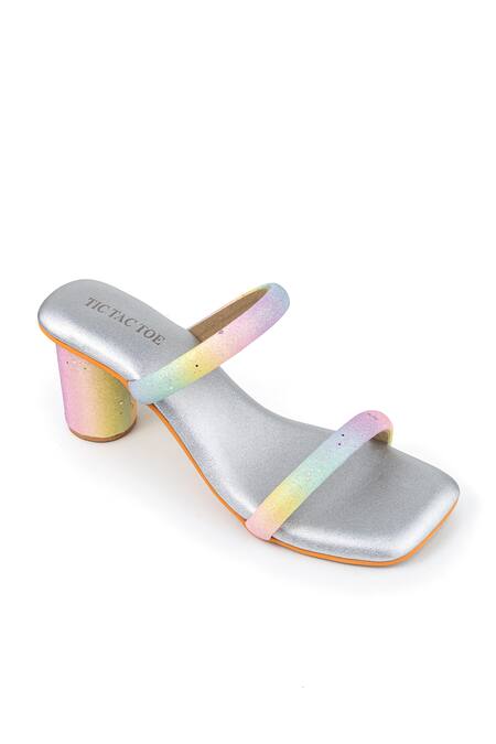 Sequin embellishment on strap, Square front design, Gradient color effect on heels