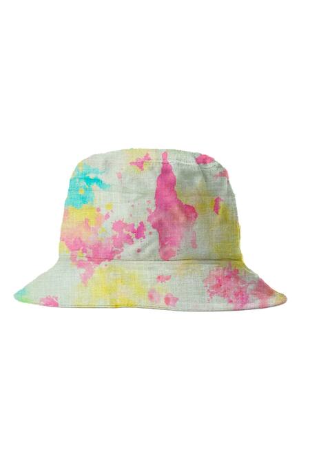 Pink, blue cotton cambric tie dyed bucket hat.