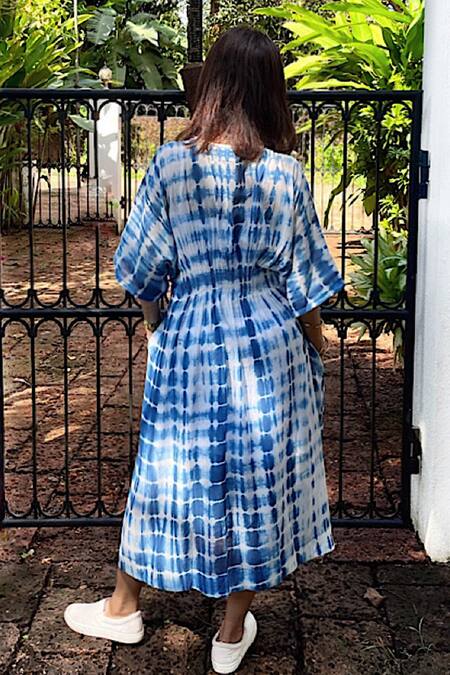 Buy_Rriso_Blue Cotton Bamboo Geometric V Neck Tie Dye Kaftan_at_Aza_Fashions
