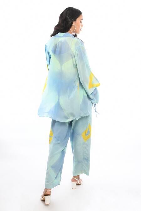 Buy_Itara_Blue Silk Tie Dye Bustier V Neck,  Collar Pant Set_at_Aza_Fashions