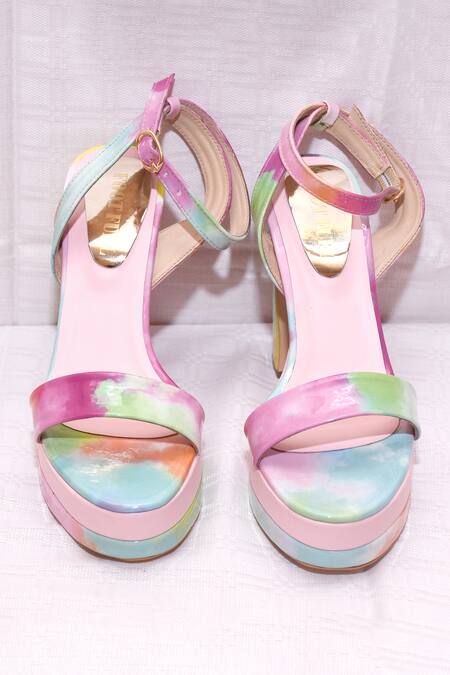 Buy_Foot Fuel_Multi Color Tie Dye Pattern Block Heels _Online_at_Aza_Fashions