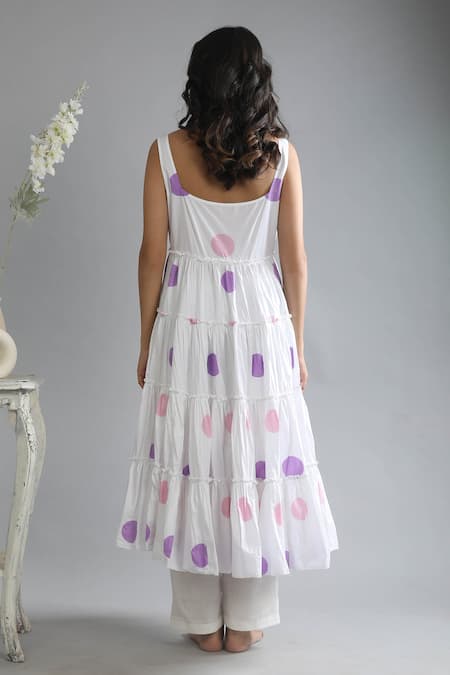 Buy_Khat_White Poplin, Cotton Sweetheart Neck Tiered Polka Pattern Kurta And Pant Set _Online_at_Aza_Fashions