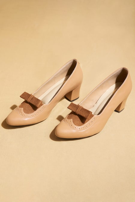 Brown Bows Custom Tan Pointed Toe Block Heels