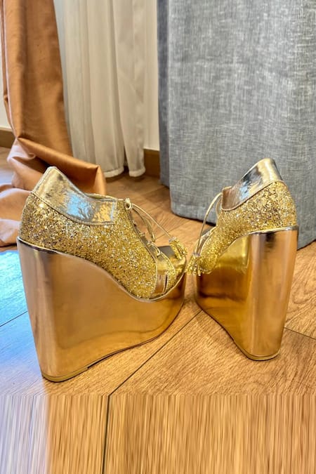 Buy_Tiesta_Gold Glitter Metallic Sneaker Wedges _at_Aza_Fashions