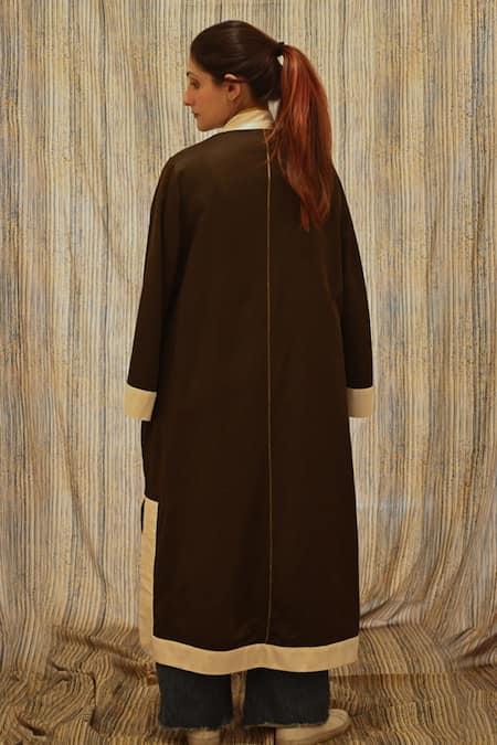 Kahlua oversized overlay with a spread out contrast edge and pockets.