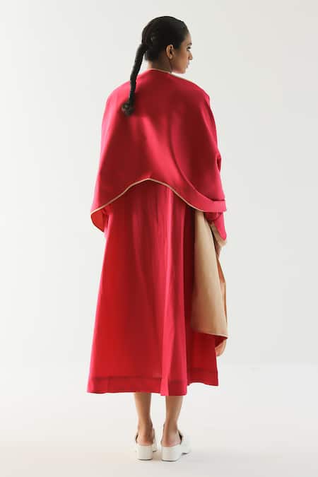 Pink midi dress featuring a mandarin collar and full sleeves with pintuck details on the bodice