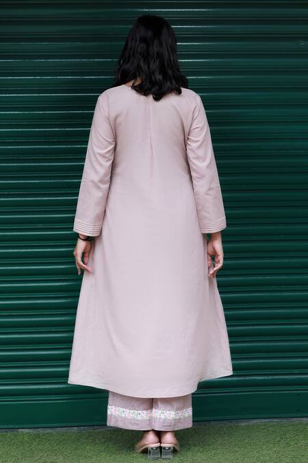 Brown Cotton Lillies Of The Valley V Neck Pattern Kurta And Pant Set