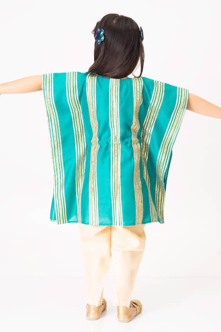 Green Chiffon Embroidery, Gota Patti Kaftan Kurta And Pant Set