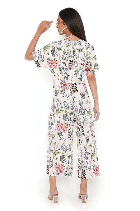 Ivory Art Crepe Titli Print V Neck Jumpsuit
