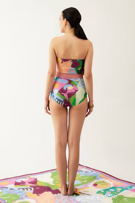Multi Color Polyamide, Lycra Bandeau Neck Aethaer Printed Swimsuit