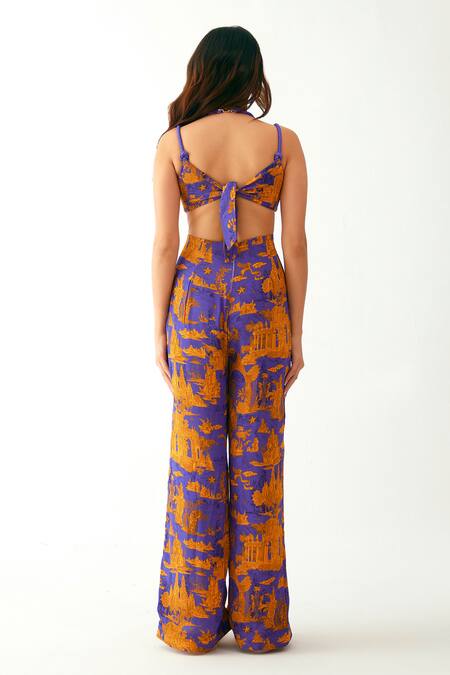 Designer jumpsuit with architectural print